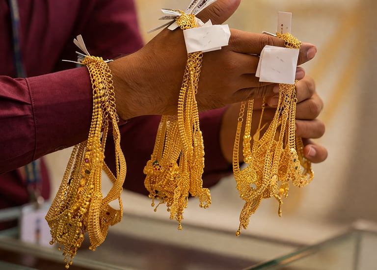 Traditional 22k and 18k gold jewelry showcasing timeless designs.